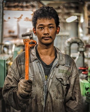 Filipino Wendell Pineda, who works with the engine crew. After his first contract he went home, spent three weeks in quarantine, and before he could see his wife and two-year-old daughter, his company requested his urgent return to sea. Photograph: Aljon Malanjit/ITF Seafarers’ Trust