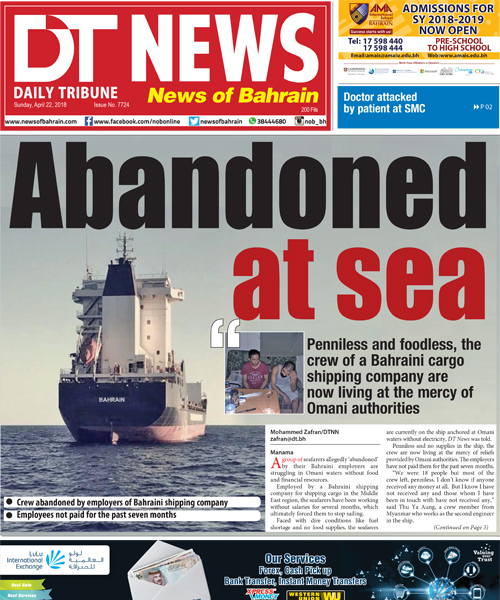 Freshwater and fuel for the ship provided by the Omani authorities to the crew at the anchorage came as a huge relief as they have been living without electricity for the past six weeks. DT News staffer Mohammed Zafran reported on April 22 and May 4 the plight of the abandoned crew of the Bahraini cargo company.